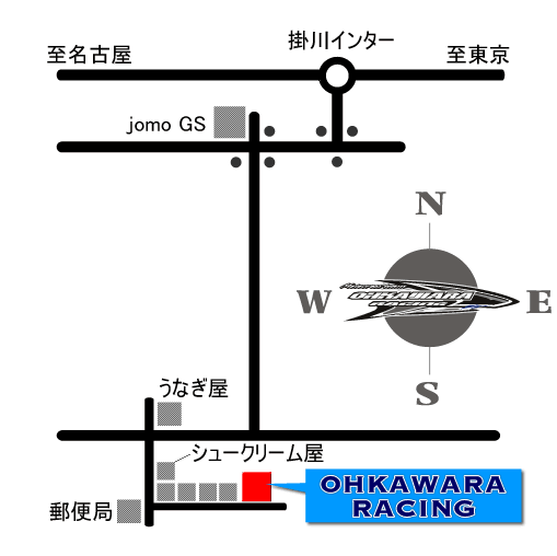 < 大河原レーシング > 〒437-1405 静岡県 掛川市 中 944-3 TEL : 0537−63−2600 FAX : 0537−63−2601 Mail : ort@ohkawara-racing.com
